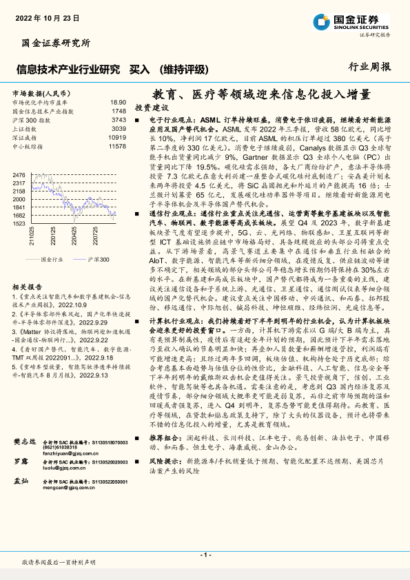 【国金证券】【20221023】信息技术产业行业周报:教育、医疗等领域迎来信息化投入增量-20页