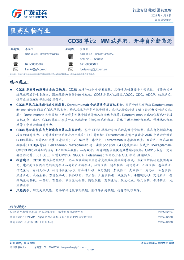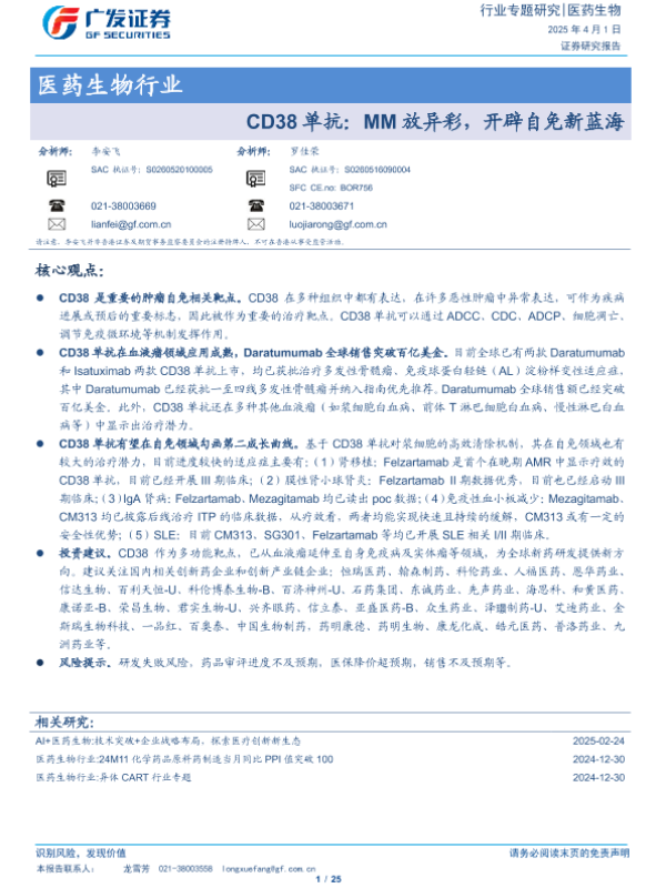 【广发证券】【20250401】CD38单抗:MM放异彩,开辟自免新蓝海-25页