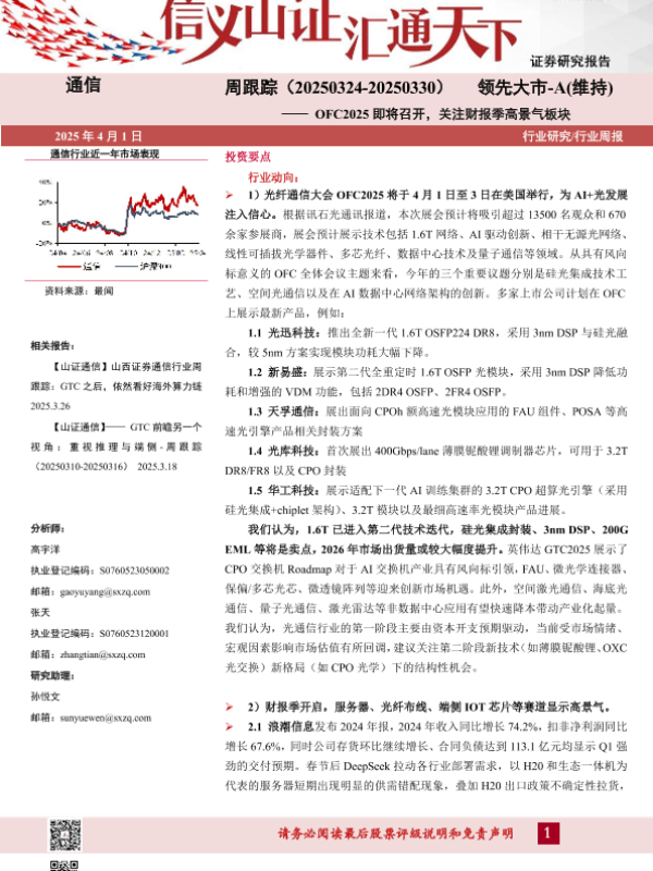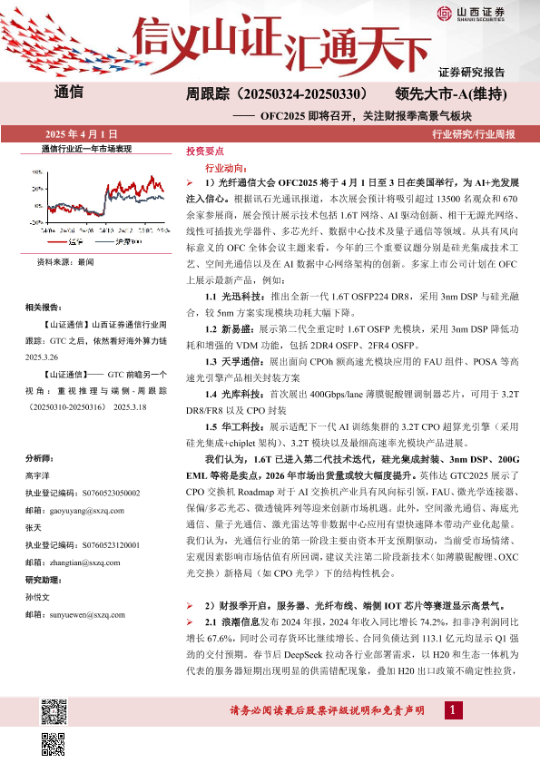 【山西证券】【20250401】通信周跟踪:OFC2025即将召开,关注财报季高景气板块-18页
