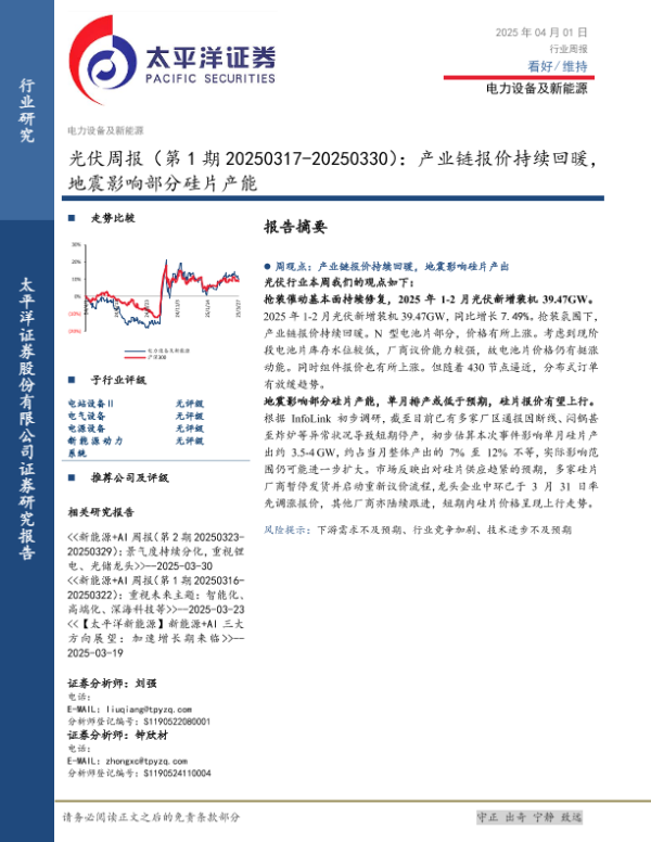 【太平洋证券】【20250401】20250401-太平洋-光伏行业周报(第1期):产业链报价持续回暖,地震影响部分硅片产能-13页