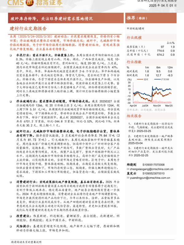 【海通证券】【20250401】20250401-招商证券-建材行业定期报告:玻纤库存转降,关注旺季建材需求落地情况-25页