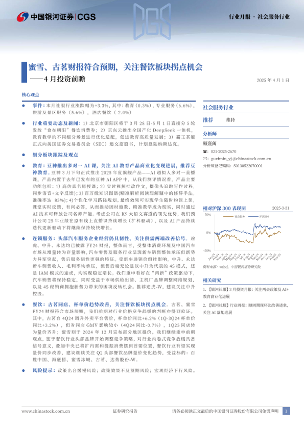 【银河证券】【20250401】20250401-中国银河-社会服务行业月报:4月投资前瞻:蜜雪、古茗财报符合预期,关注餐饮板块拐点机会-16页