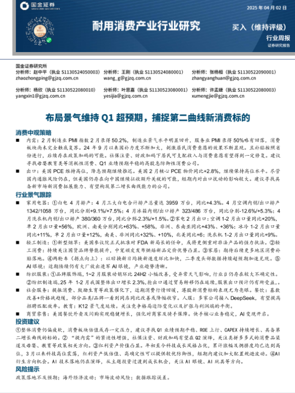 【国金证券】【20250402】耐用消费产业行业研究:布局景气维持Q1超预期,捕捉第二曲线新消费标的-15页