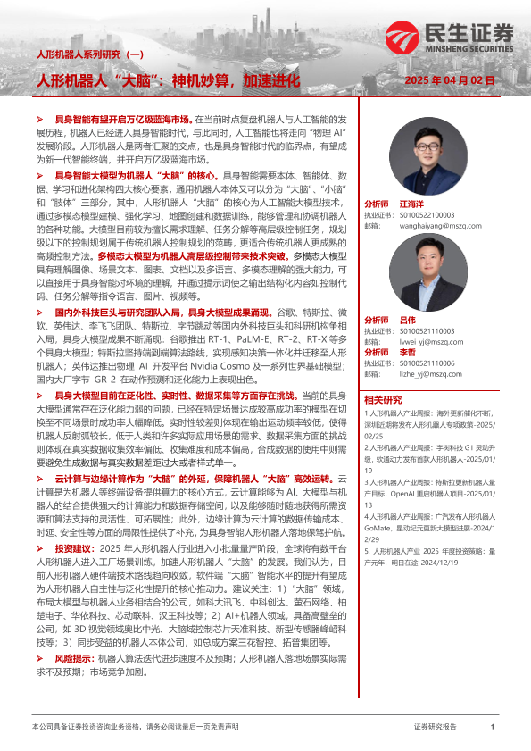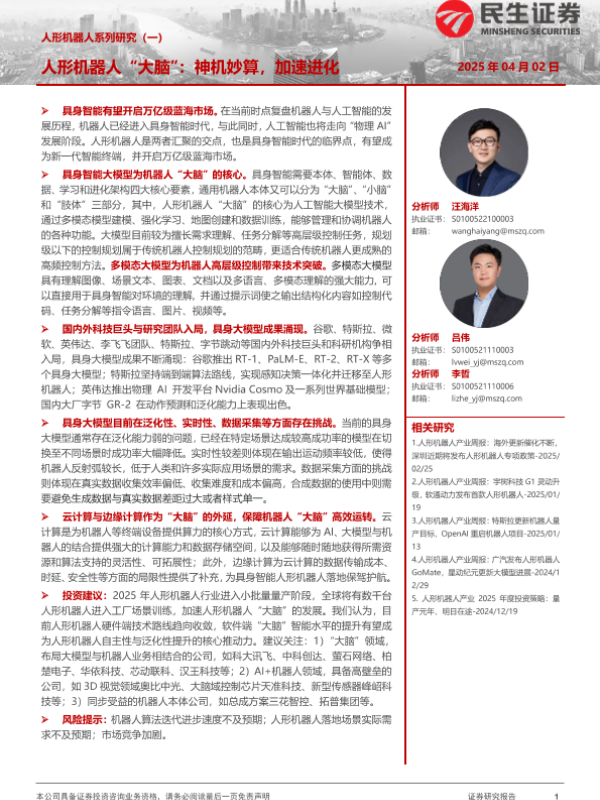 【民生证券】【20250402】人形机器人系列研究(一):人形机器人“大脑”:神机妙算,加速进化-27页