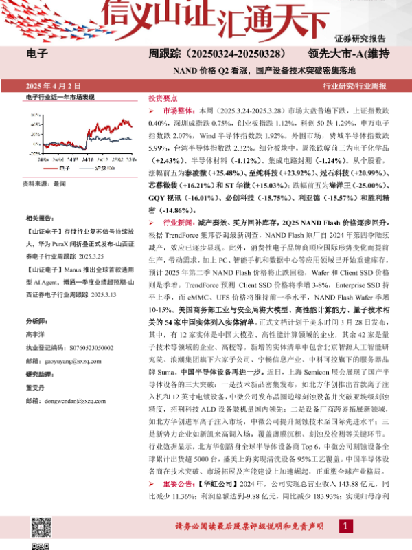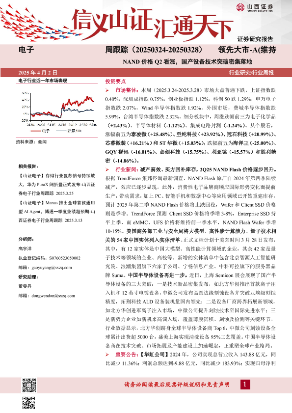 【山西证券】【20250402】电子周跟踪:NAND价格Q2看涨,国产设备技术突破密集落地-14页