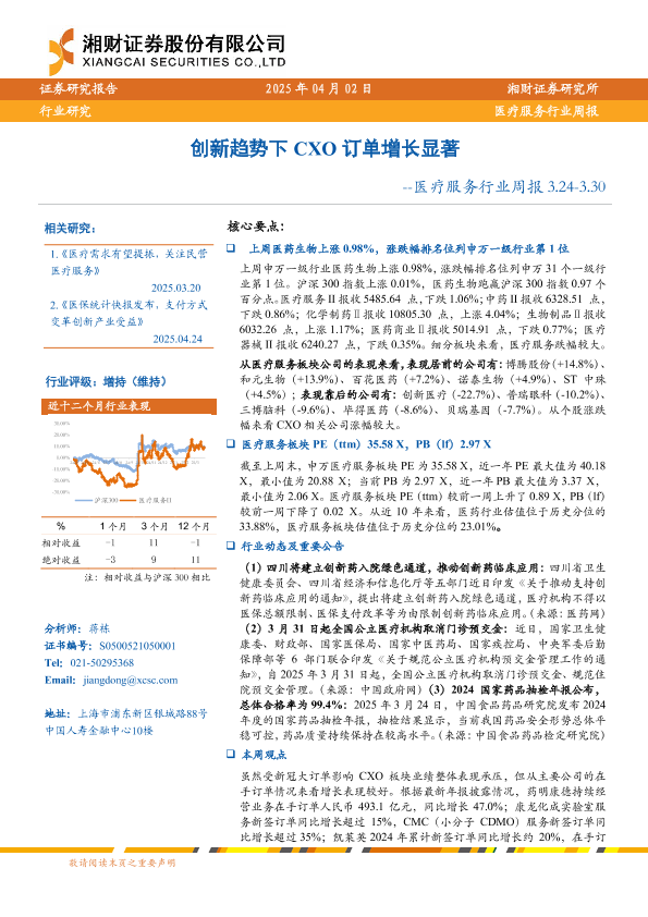 【湘财证券】【20250402】创新趋势下CXO订单增长显著 -- 医疗服务行业周报 3.24-3.30-11页