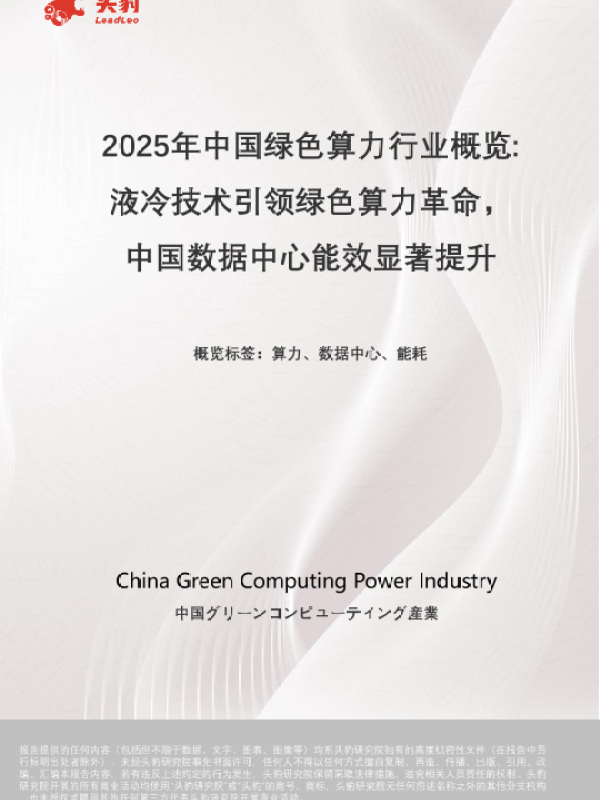 【头豹研究院】【20250402】2025年中国绿色算力行业概览:液冷技术引领绿色算力革命,中国数据中心能效显著提升-25页