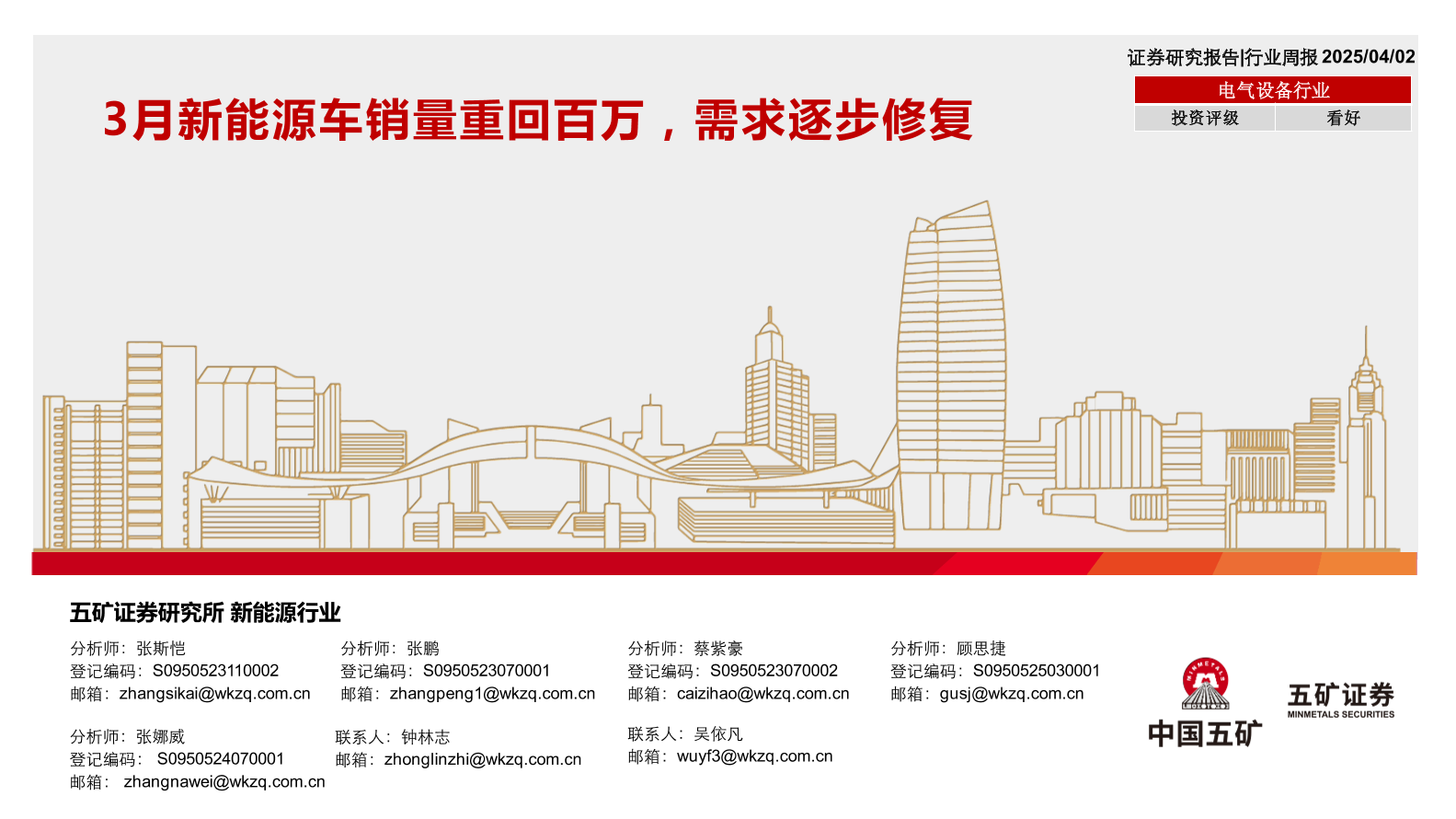 【五矿证券】【20250402】电气设备行业行业周报:3月新能源车销量重回百万,需求逐步修复-54页