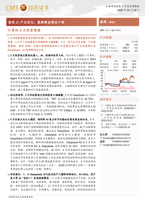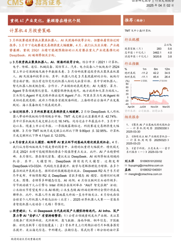 【海通证券】【20250402】计算机4月投资策略:重视AI产业变化,兼顾潜在绩优个股-19页