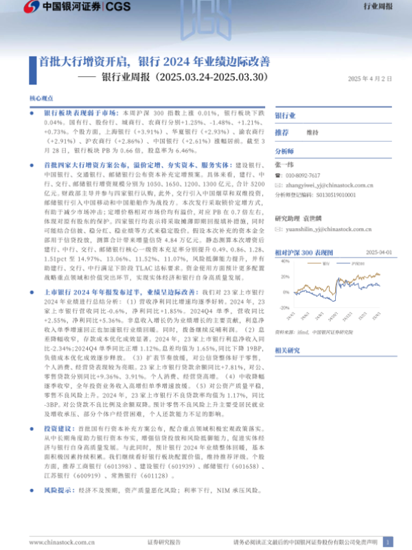 【银河证券】【20250402】20250402-中国银河-银行业周报:首批大行增资开启,银行2024年业绩边际改善-19页
