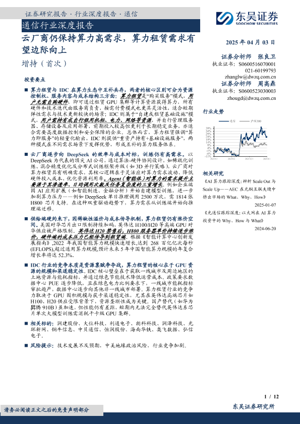 【东吴证券】【20250403】通信行业深度报告:云厂商仍保持算力高需求,算力租赁需求有望边际向上-12页