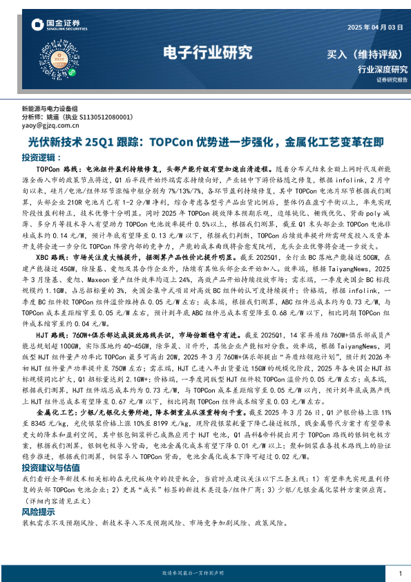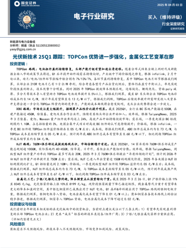 【国金证券】【20250403】光伏新技术25Q1跟踪:TOPCon亿优势进一步强化,金属化工艺变革在即-22页