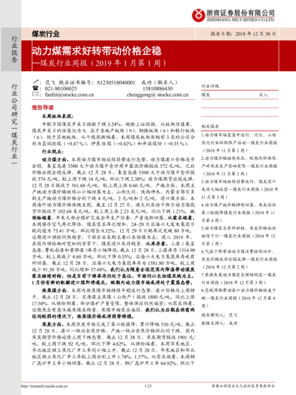 【浙商证券】【20181230】20181230-浙商证券-煤炭行业周报:动力煤需求好转带动价格企稳-25页