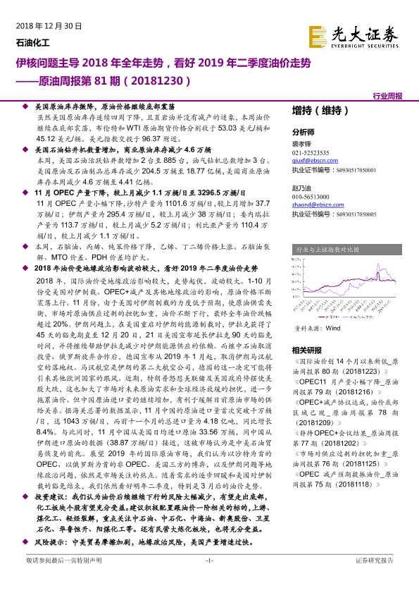 【光大证券】【20181230】原油周报第81期:伊核问题主导2018年全年走势,看好2019年二季度油价走势-14页