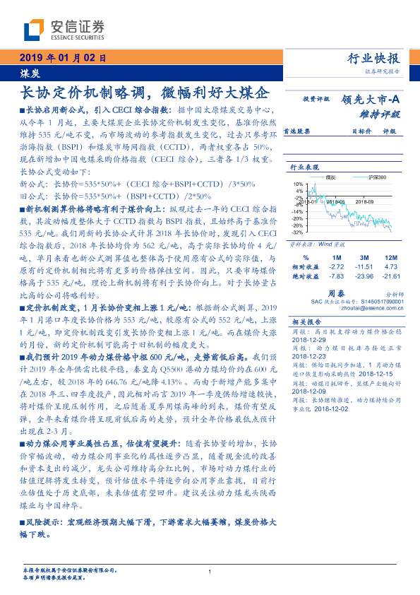 【安信证券】【20190102】煤炭行业快报:长协定价机制略调,微幅利好大煤企-4页