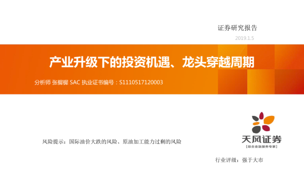 【天风证券】【20190105】石油化工行业:产业升级下的投资机遇、龙头穿越周期-3页