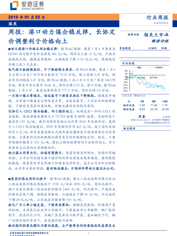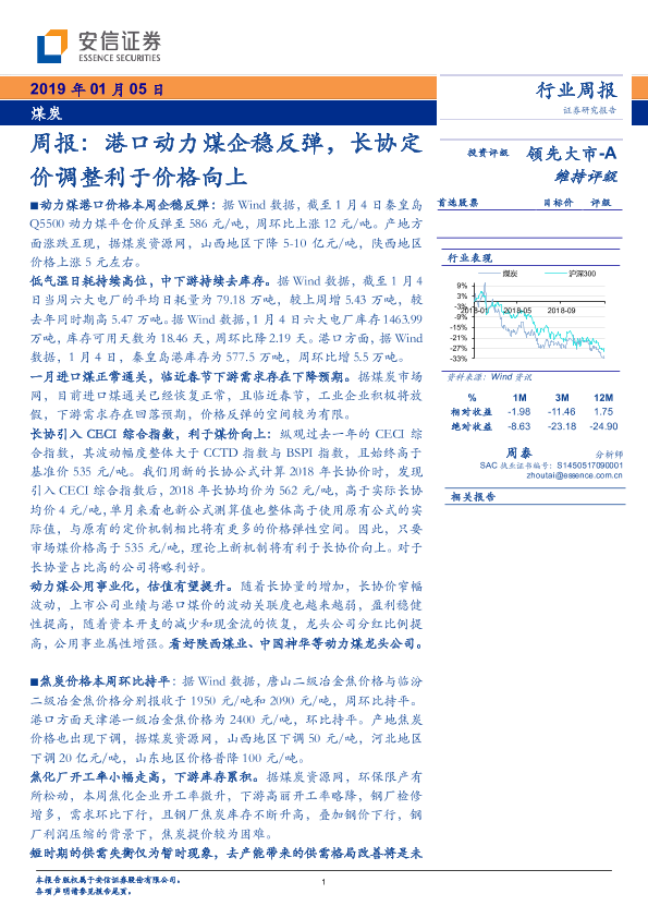 【安信证券】【20190105】20190105-安信证券-煤炭行业周报:港口动力煤企稳反弹,长协定价调整利于价格向上-23页