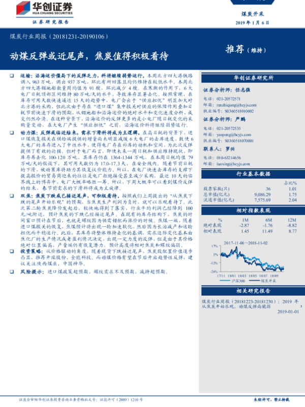 【华创证券】【20190106】20190106-华创证券-煤炭行业周报:动煤反弹或近尾声,焦炭值得积极看待-15页