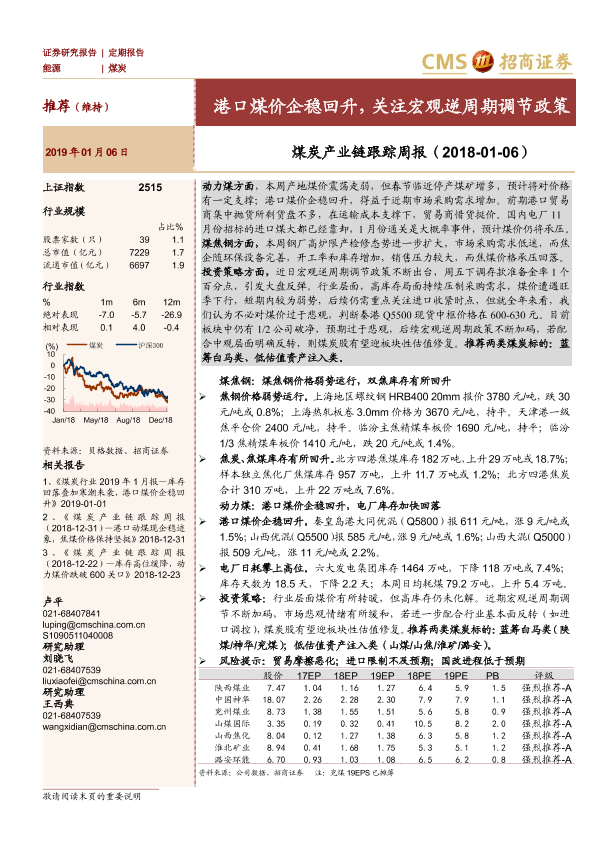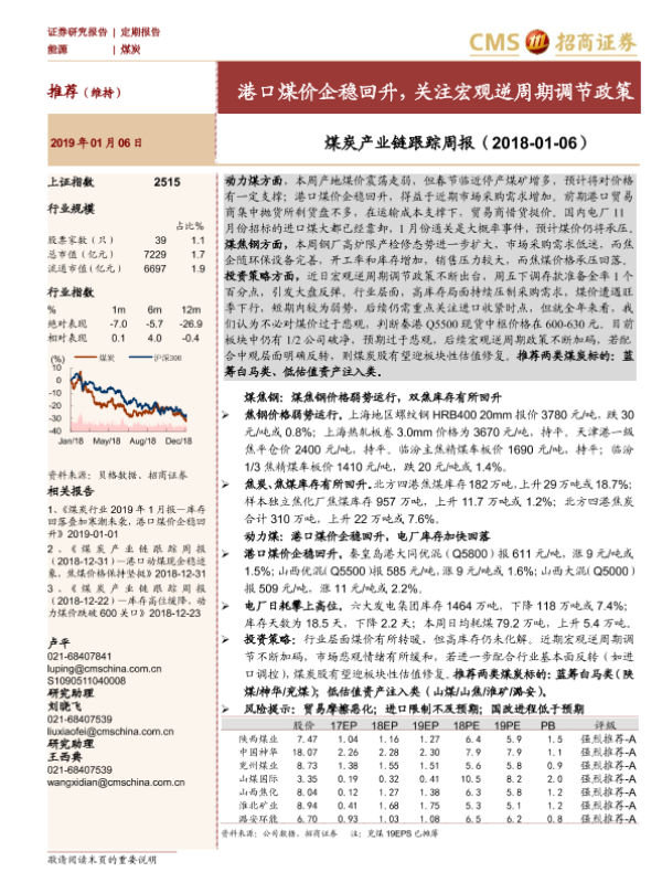 【海通证券】【20190106】煤炭产业链跟踪周报:港口煤价企稳回升,关注宏观逆周期调节政策-20页