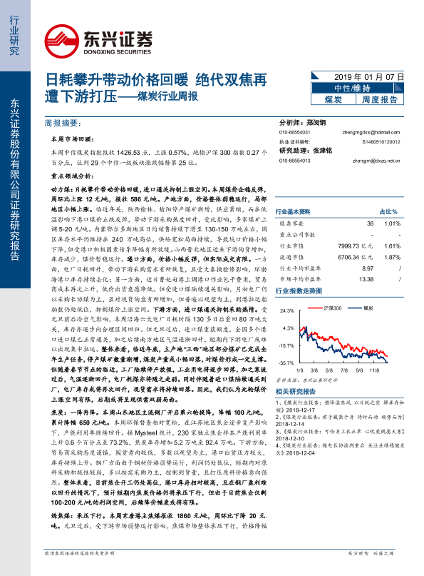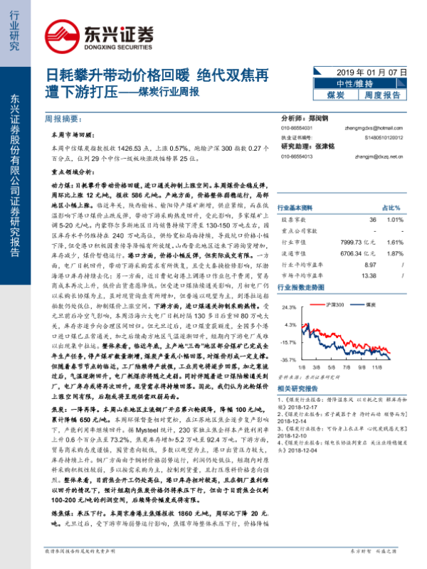 【东兴证券】【20190107】20190107-东兴证券-煤炭行业周报:日耗攀升带动价格回暖 绝代双焦再遭下游打压-19页