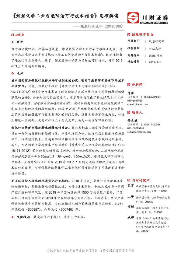 【川财证券】【20190108】煤炭行业点评:《炼焦化学工业污染防治可行技术指南》发布解读-2页