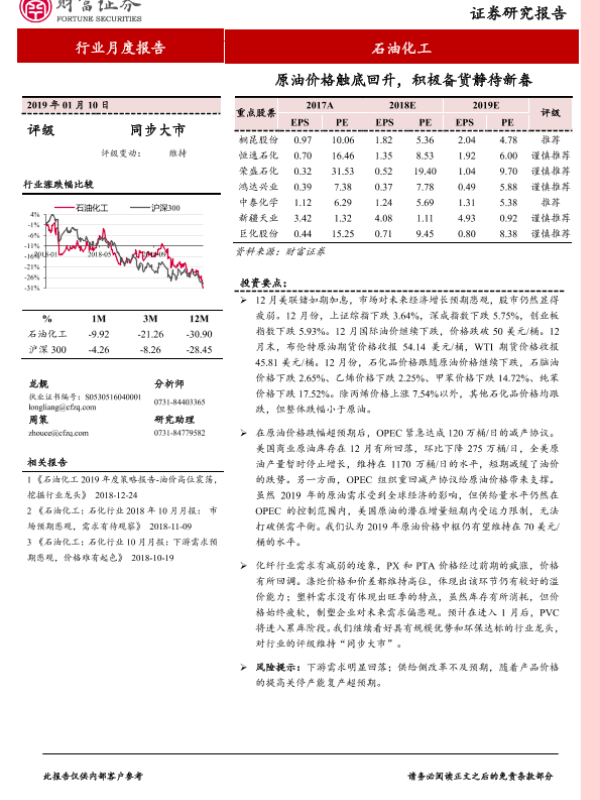 【财信证券】【20190110】石油化工行业月度报告:原油价格触底回升,积极备货静待新春-10页
