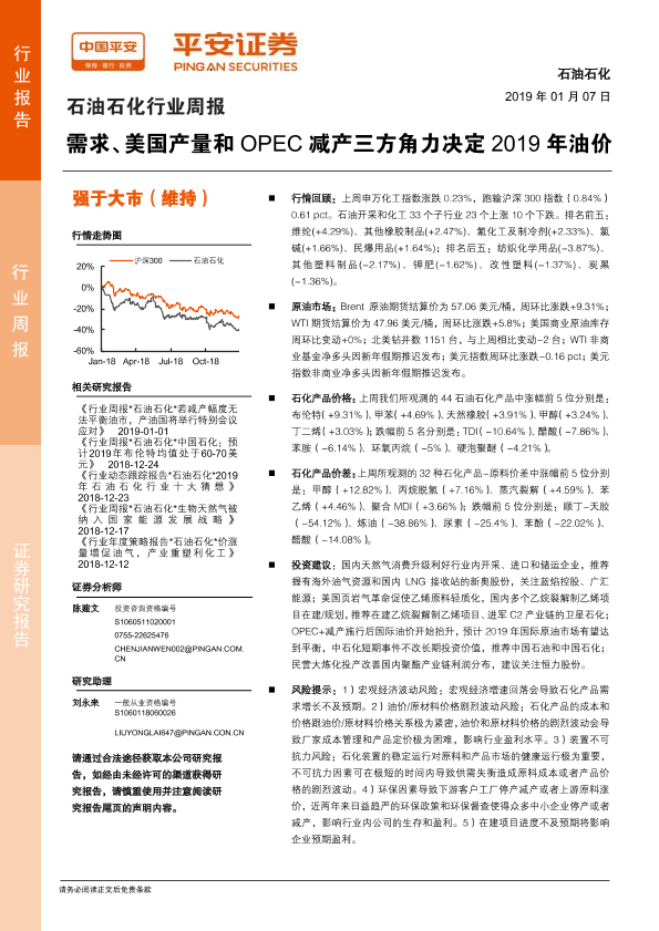 【平安证券】【20190107】石油石化行业周报:需求、美国产量和OPEC减产三方角力决定2019年油价-28页
