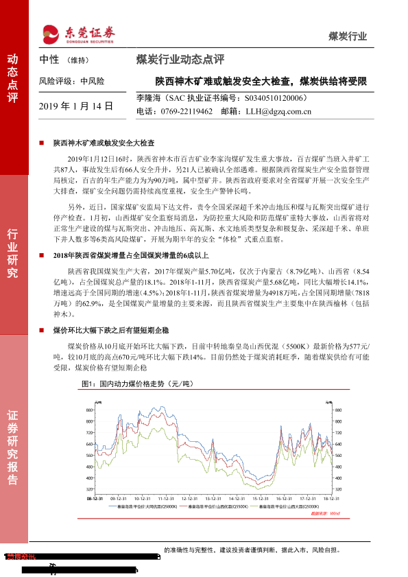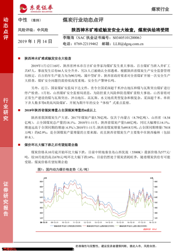 【东莞证券】【20190114】煤炭行业动态点评:陕西神木矿难或触发安全大检查,煤炭供给将受限-3页