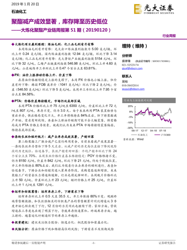 【光大证券】【20190120】大炼化聚酯产业链周报第51期:聚酯减产成效显著,库存降至历史低位-13页