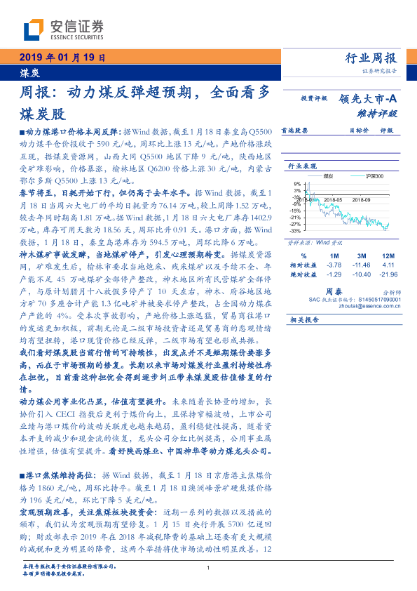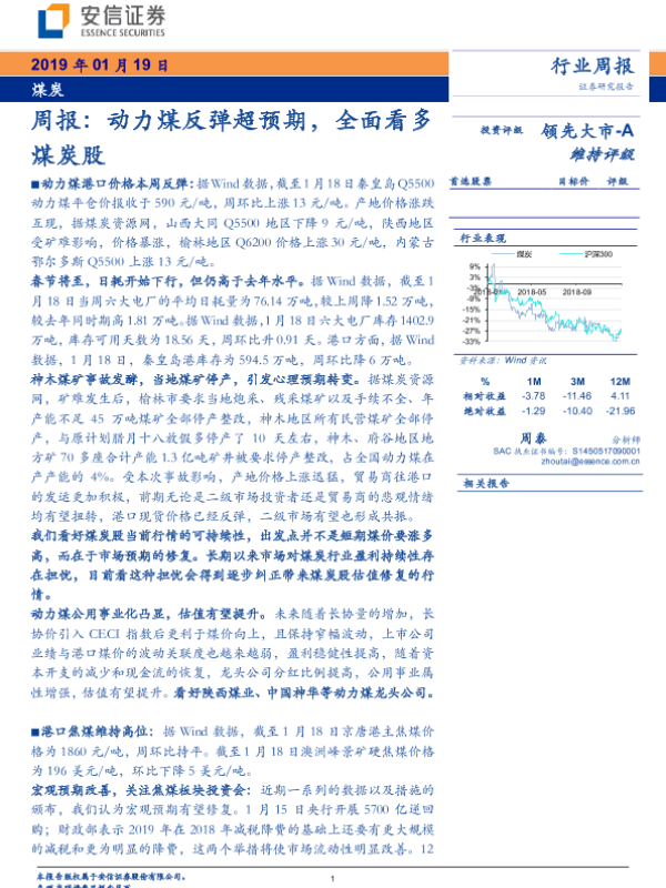 【安信证券】【20190119】20190119-安信证券-煤炭行业周报:动力煤反弹超预期,全面看多煤炭股-24页
