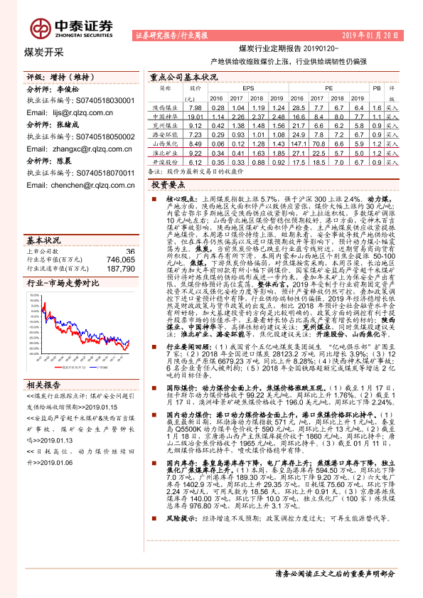 【中泰证券】【20190120】20190120-中泰证券-煤炭行业定期报告:产地供给收缩致煤价上涨,行业供给端韧性仍偏强-16页