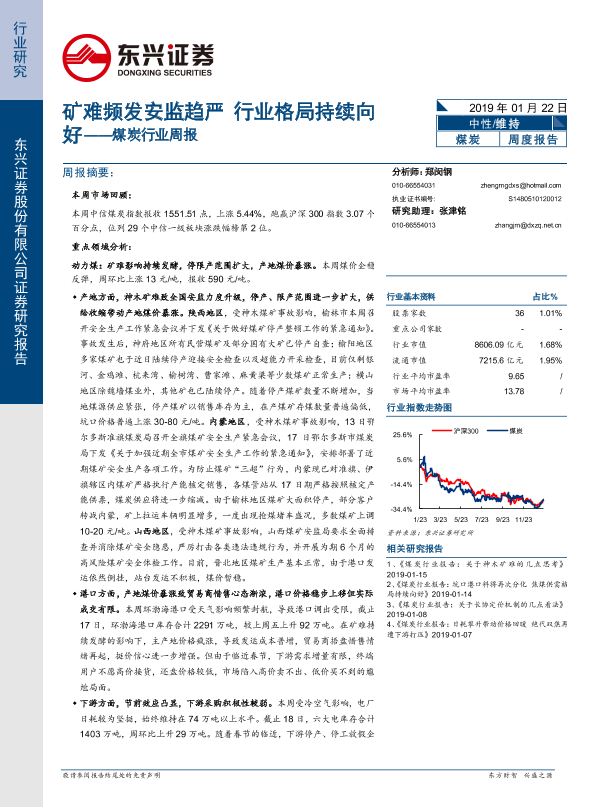 【东兴证券】【20190122】20190122-东兴证券-煤炭行业周报:矿难频发安监趋严 行业格局持续向好-17页