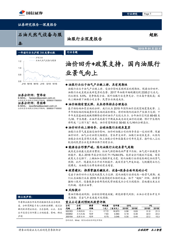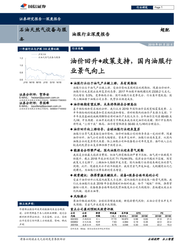 【国信证券】【20190122】20190122-国信证券-油服行业深度报告:油价回升+政策支持,国内油服行业景气向上-51页