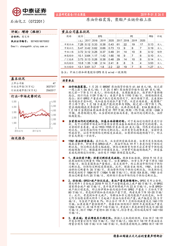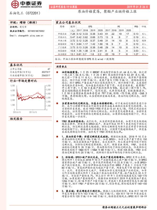 【中泰证券】【20190126】石油化工行业周报:原油价格震荡,聚酯产业链价格上涨-17页