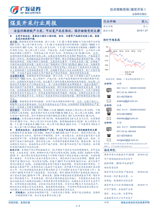 【广发证券】【20190127】煤炭开采行业周报:安监仍维持较严力度,节后复产或有推迟,煤价继续受到支撑-7页