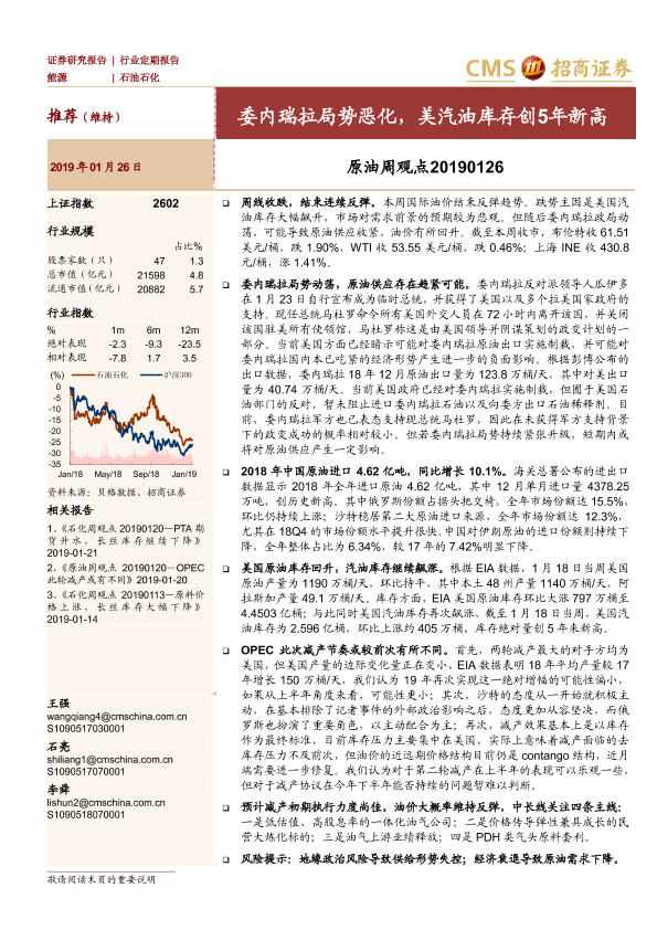 【海通证券】【20190126】原油周观点:委内瑞拉局势恶化,美汽油库存创5年新高-15页