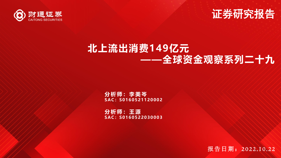 【财通证券】【20221022】全球资金观察系列二十九:北上流出消费149亿元-30页