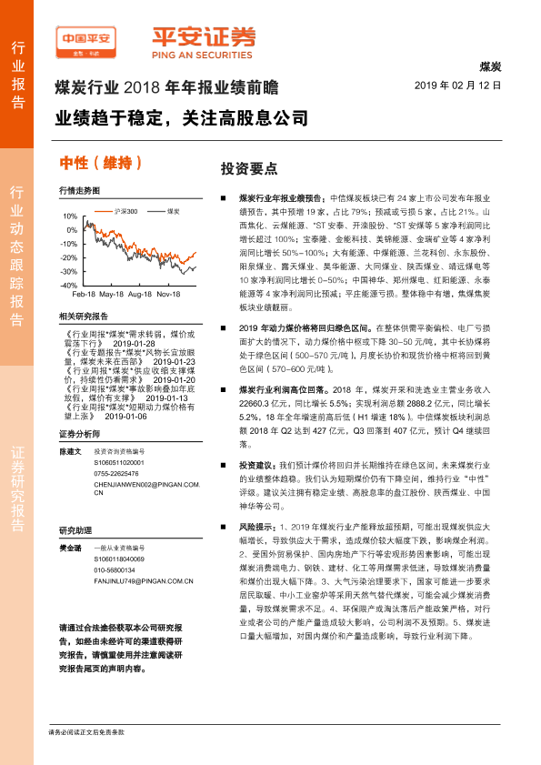 【平安证券】【20190212】煤炭行业2018年年报业绩前瞻:业绩趋于稳定,关注高股息公司-6页