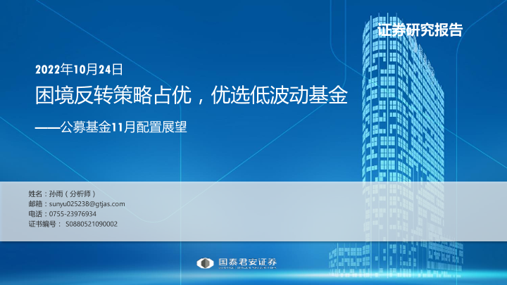 【国泰君安证券】【20221024】公募基金11月配置展望:困境反转策略占优,优选低波动基金-31页