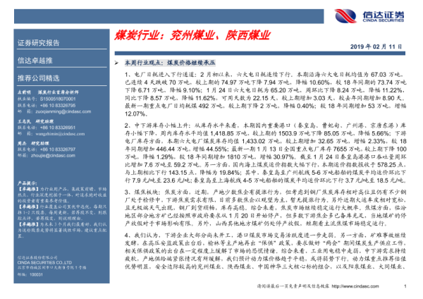 【信达证券】【20190211】煤炭行业:兖州煤业、陕西煤业-8页