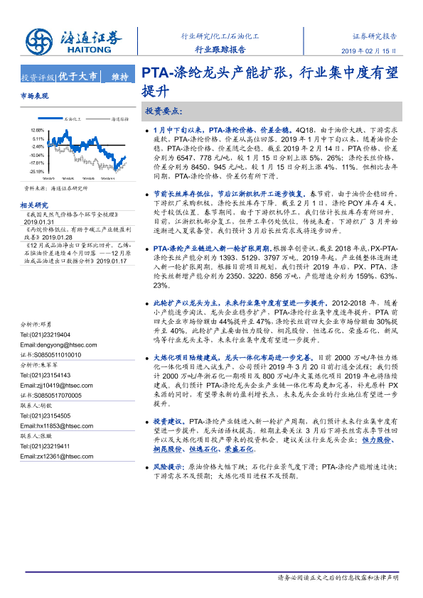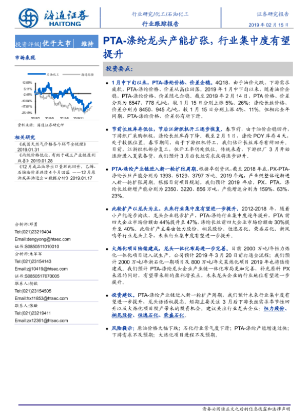 【海通证券】【20190215】20190215-海通证券-石油化工行业跟踪报告:PTA-涤纶龙头产能扩张,行业集中度有望提升-4页