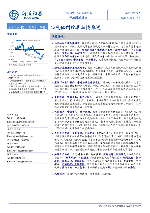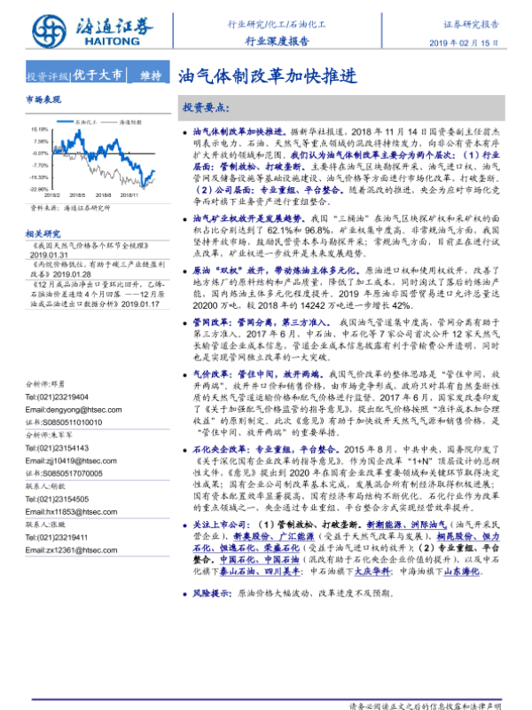 【海通证券】【20190215】石油化工行业深度报告:油气体制改革加快推进-33页