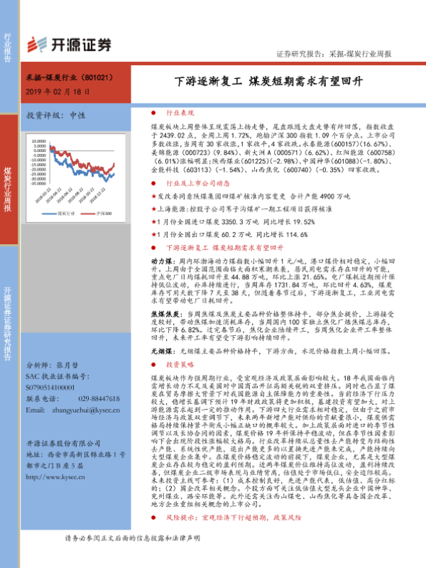 【开源证券】【20190218】20190218-开源证券-煤炭行业周报:下游逐渐复工 煤炭短期需求有望回升-21页