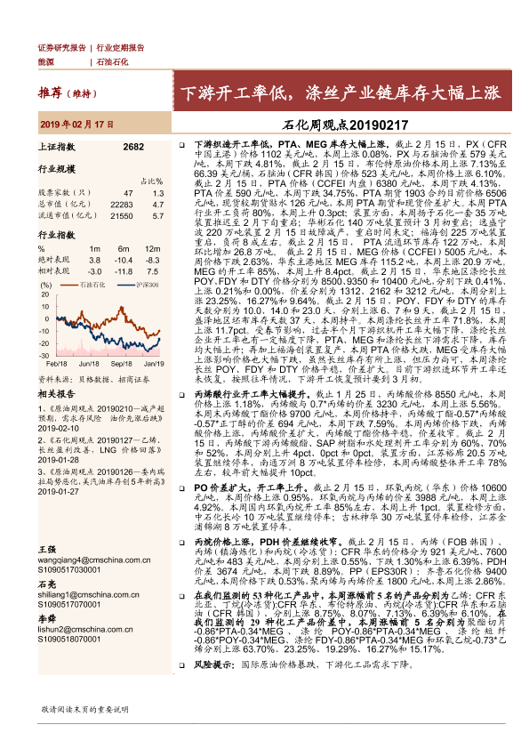 【海通证券】【20190217】石化周观点:下游开工率低,涤丝产业链库存大幅上涨-18页