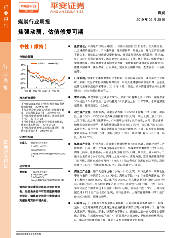 【平安证券】【20190225】20190225-平安证券-煤炭行业周报:焦强动弱,估值修复可期-6页