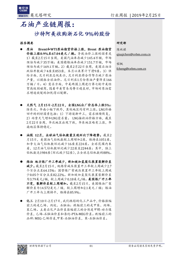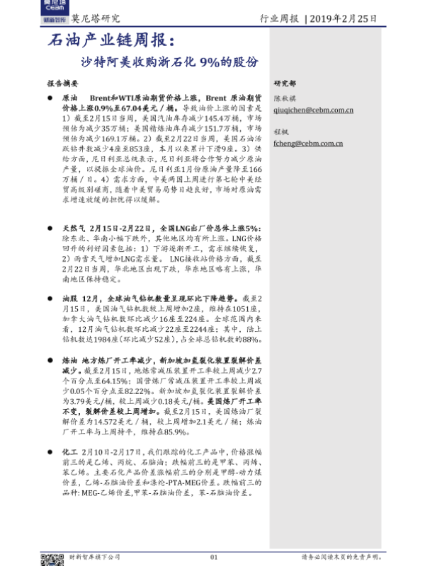 【莫尼塔研究】【20190225】石油产业链周报:沙特阿美收购浙石化9%的股份-11页