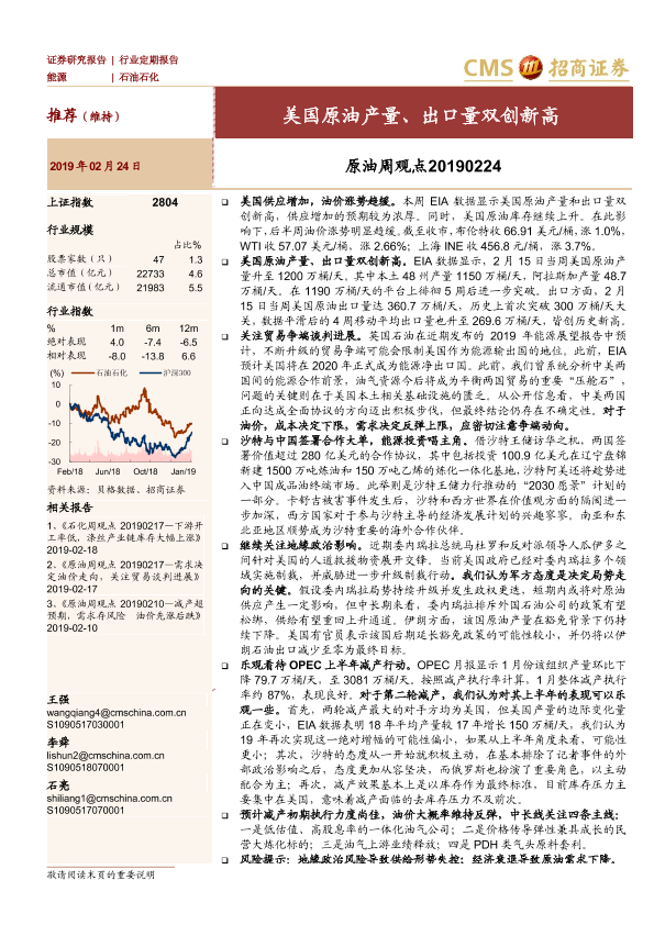 【海通证券】【20190224】原油周观点:美国原油产量、出口量双创新高-15页