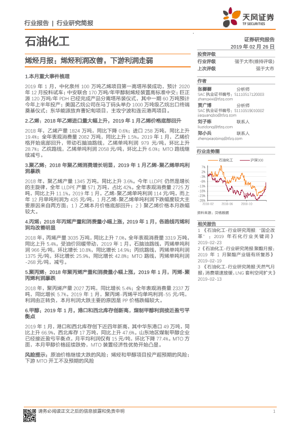 【天风证券】【20190226】20190226-天风证券-烯烃月报:烯烃利润改善,下游利润走弱-9页