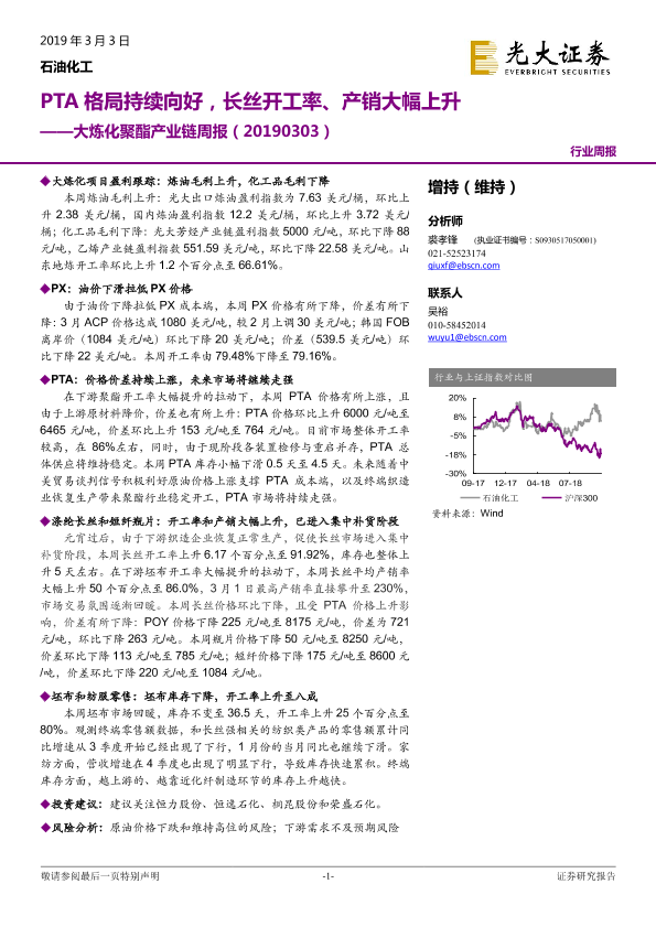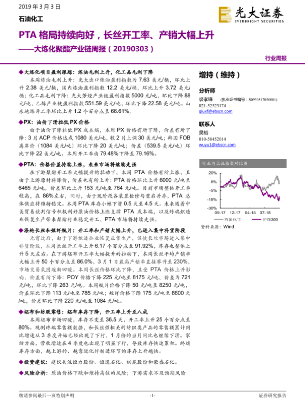 【光大证券】【20190303】大炼化聚酯产业链周报:PTA格局持续向好,长丝开工率、产销大幅上升-13页