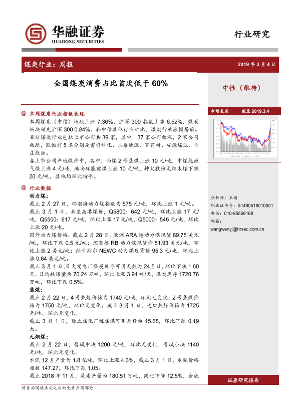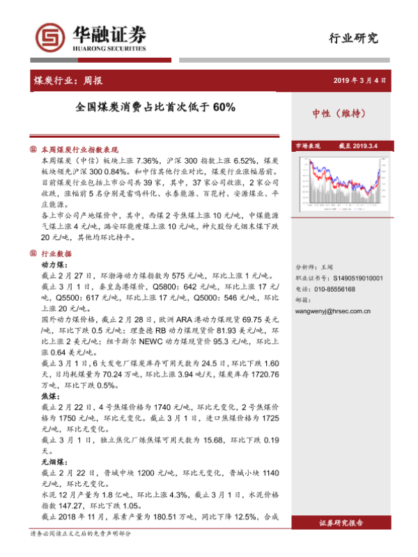 【华融证券】【20190304】20190304-华融证券-煤炭行业周报:全国煤炭消费占比首次低于60%-16页